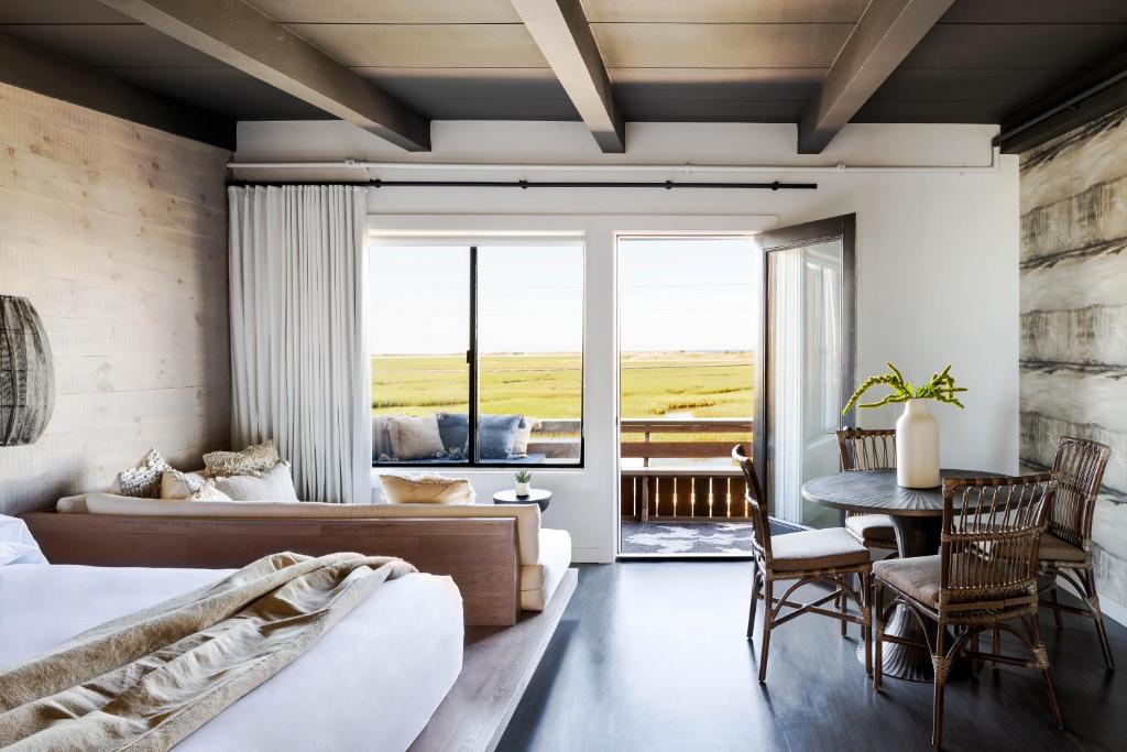 I centrum ligger ett kolonialt hus från 1700-talet, omgivet av stugor utspridda över 20 hektar. Rummen varierar från mysiga stugor till nyare lyxiga alternativ med balkonger och utsikt över bukten. Alla boenden har raffinerade detaljer och tidlös New England-stil, vilket erbjuder en fridfull tillflyktsort från det moderna livet.