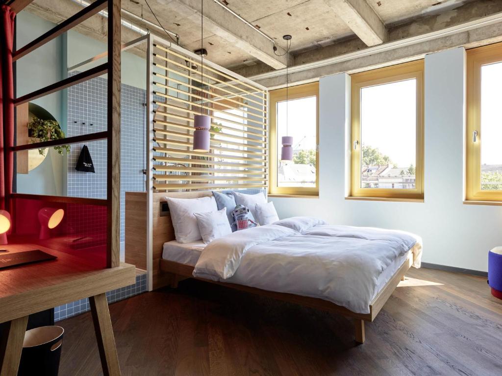 Hotellet är designat av Werner Aisslinger och präglas av en retrofuturistisk, senmodernistisk västtysk estetik med pastellfärger och rundade former. Rummen varierar i storlek från Medium till Gigantic, och alla har regnduschar, Bluetooth-högtalare och smarta TV-apparater, vilket blandar nostalgisk charm med modern komfort för att fängsla dagens resenärer.