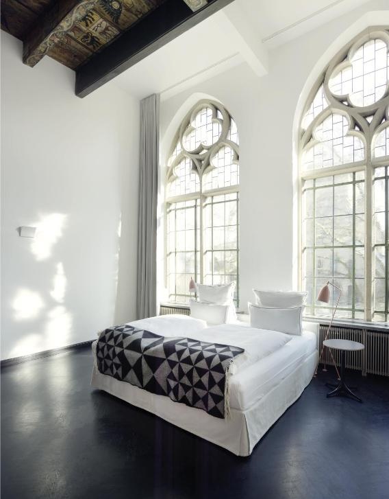 Den lokala konstsamlaren Michael Kaune samarbetade med Rolf Kursawes arkitekter för att genomföra en tvåårig renovering som förvandlade byggnaden till ett landmärke. De 34 rummen och sviterna visar upp byggnadens organiska layout och är alla inredda med noggrant utvalda konstverk, vilket ger gästerna en uppslukande upplevelse som förenar historia, design och konst.