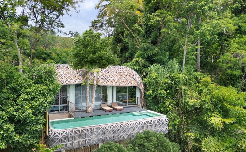 De fristående villorna hämtar inspiration från stamfolkens bostäder: Tent Pool Villas är inspirerade av regnskogens nomader med kupolformade tak och upphöjda ovala badkar. Tree Pool Houses speglar We-ha-klanen med två våningar och hängande möbler. Clay Pool Cottages påminner om traditionella thailändska halmtakshus. Bird’s Nest Villas liknar vävda fågelburar av trä och glas med utsikt över havet och skogen.