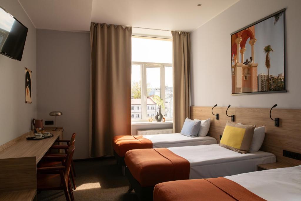 Hotellet ligger nära de viktigaste sevärdheterna, butikerna och restaurangerna, vilket gör det perfekt för både stadsresor och affärsresor. Med praktiska faciliteter och en avslappnad atmosfär är det en bekväm bas för din vistelse i Litauens huvudstad.